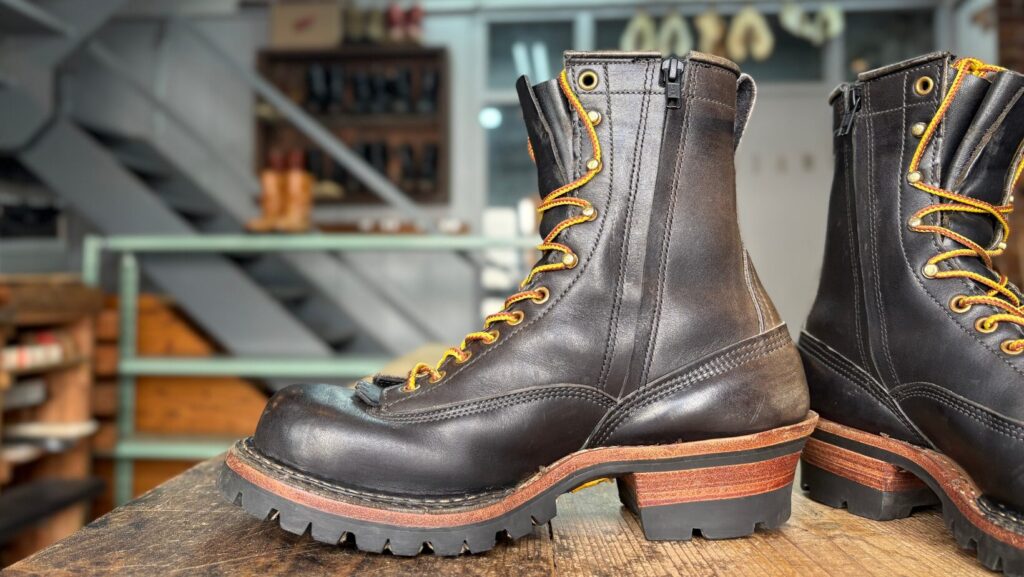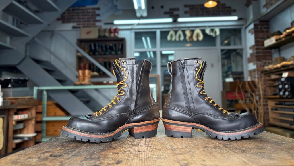 ブーツ内側にYKKの金属ファスナーを取り付け。