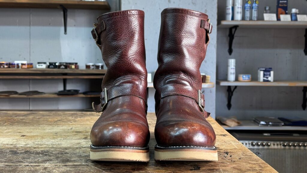 RED WING 2967 エンジニア Vibram2026 ソール交換修理 2026 1/25 ブーツ修理&カスタム レッドウィング 2026年1月25日 費用や納期の目安は随時変更しています。最新の費用や納期は店頭までお問い合わせください。 お問い合わせはコチラをタップ お問い合わせ先靴修理RADIAN豊橋〒440-0893 愛知県豊橋市札木町106-1Mail : info@radian-mail.com定休日 : 水曜と木曜日営業時間 : 10:00 – 17:00その他臨時のお休みがある場合あります。ホームページなどで営業日ご確認の上ご来店ください ブーツ修理&カスタム レッドウィング よかったらシェアしてね! URLをコピーしました! URLをコピーしました! エンジニアブーツの鉄心スチール抜き修理 関連記事 エンジニアブーツの鉄心スチール抜き修理 2025年12月22日 ローリングダブトリオ・キャスパー|堅牢な雰囲気のダブルステッチ仕様、vibram#100ソールカスタムでウエスコボス風のカスタム 2025年11月21日 【経年変化】ブーツを育てる靴磨き|20年30年先まで履くためのブーツメンテナンスの方法 2025年11月17日 レッドウイング・ポストマンチャッカのソール交換|vibram#705ソール 2025年11月17日 REDWING 8178 エンジニアブーツの鉄芯抜き&フラットボックスカスタム|vibram#700ソールカスタム 2025年11月16日 REDWING・ポストマン|vibram#430カスタム 2025年11月15日 REDWING エンジニアブーツ|Vibram100×ダブルミッドソールで仕上げる、オールブラックの重厚ブーツカスタム 2025年11月11日 ビルケンシュトック ボストンを厚底カスタム|Vibram1136ソールで存在感ある仕上がりに 2025年11月7日